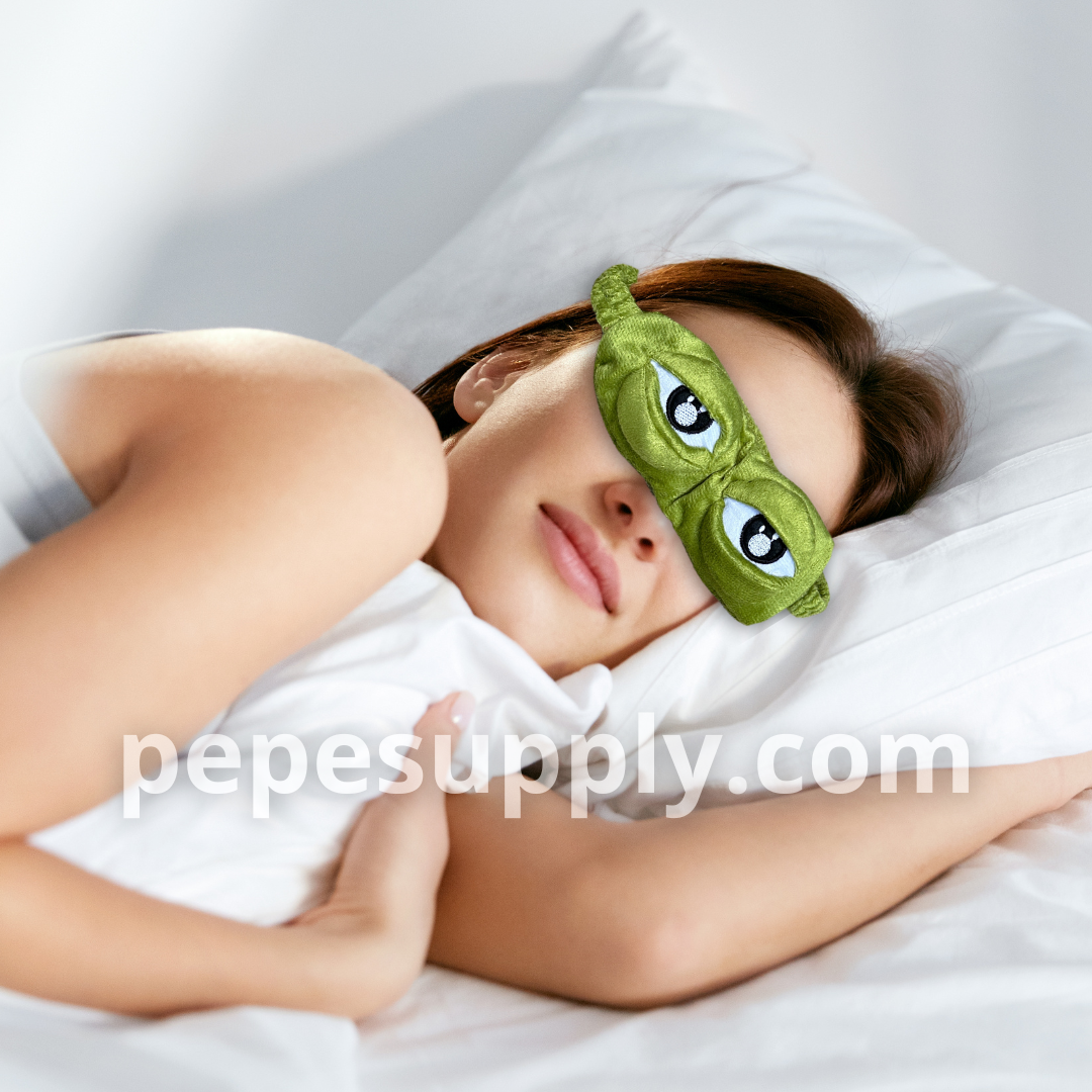 Indulge in some beauty sleep with the Pepe Sleep Mask. Designed as a playful nod to the iconic meme, this eye mask will block out the light and help you catch some z's in style. Stay rested and rejuvenated with the Pepe Sleep Mask.