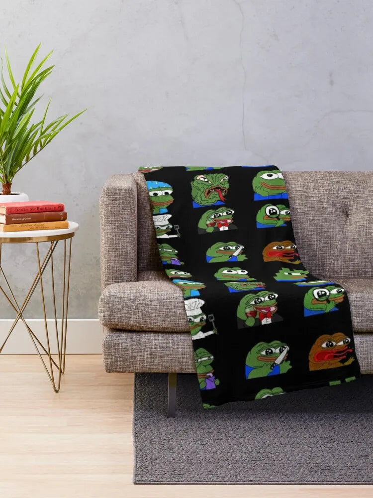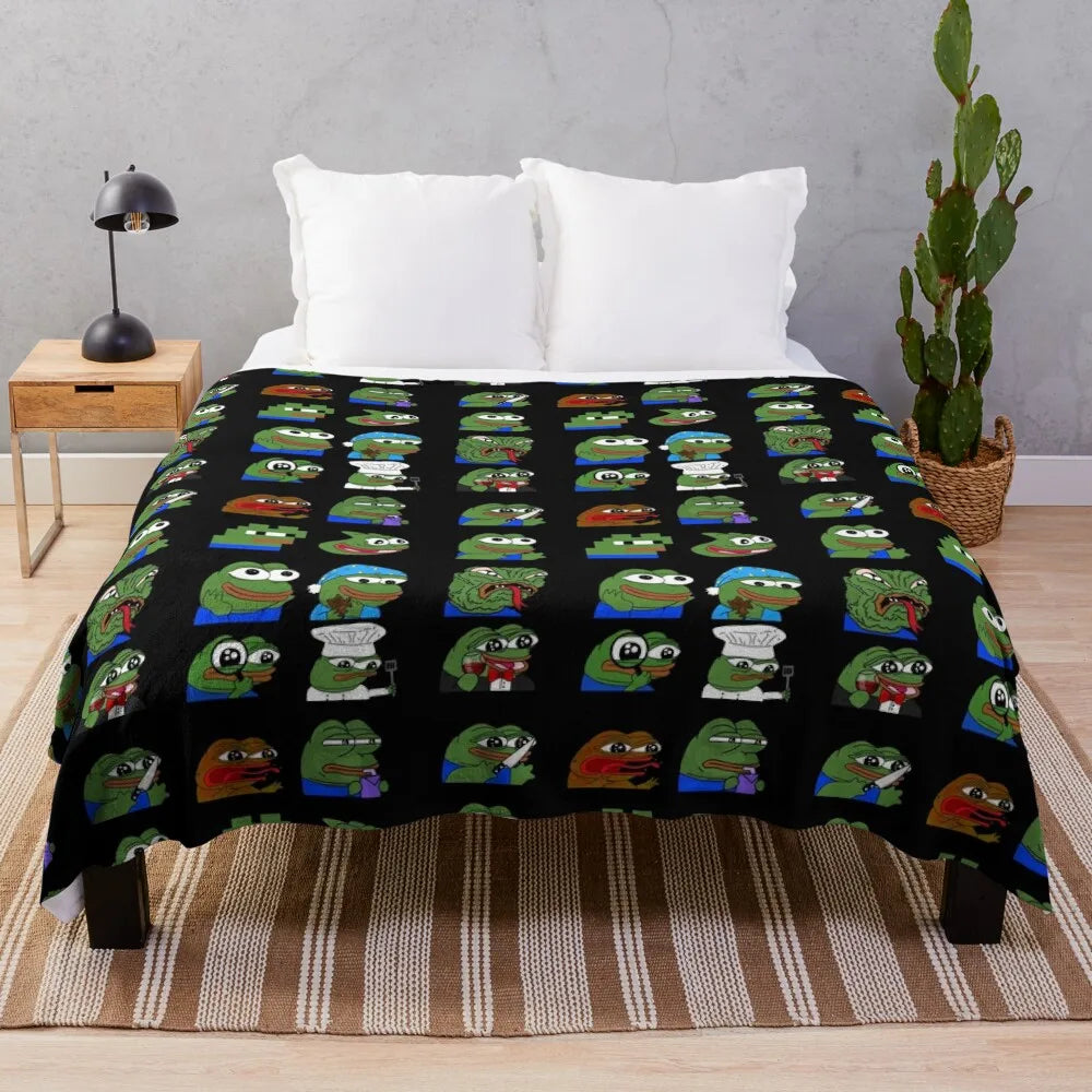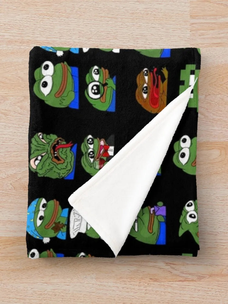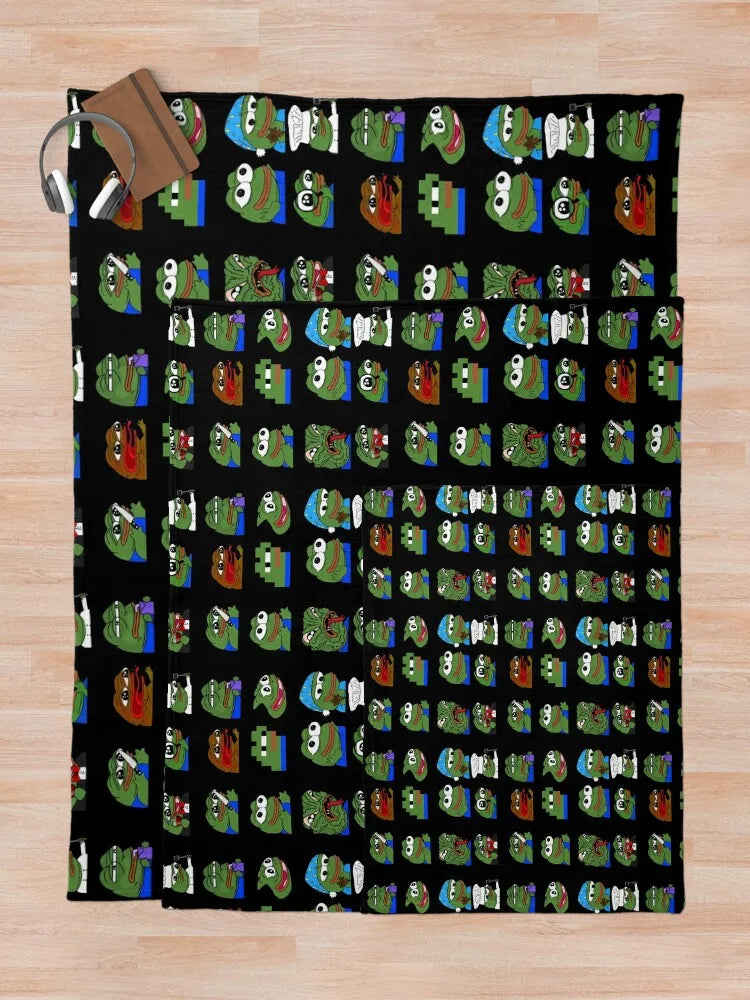 Wrap yourself in warmth with the Pepe Throw Blanket. This playful and quirky plush blanket features a variety set of 12 unique "pepes" to keep you cozy and stylish. Made from thermal wool, it's perfect for snuggling up on chilly nights. Add some humor to your home decor with this one-of-a-kind throw!